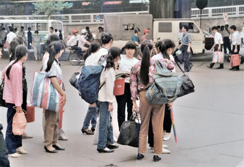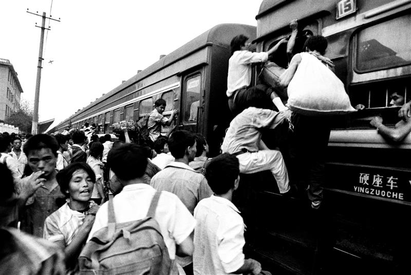 1992年8月27日,四川南充地區(qū)的農(nóng)民,剛收割完水稻,便紛紛打起背包南下,一時間廣安火車站前人山人海。列車一到站,連車門都難以打開,下車的人下不來,上車的人背著行李從車窗往里爬。 周國強