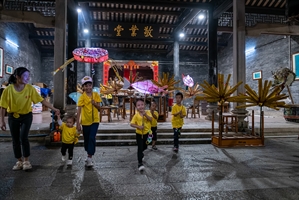 《祠堂玩樂的童娃們》