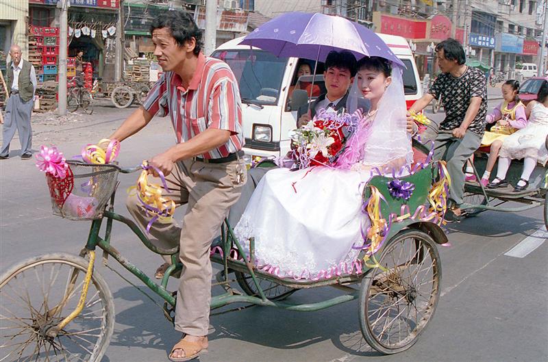 當一些新人爭相用“奔馳、寶馬”等,高檔轎車作為迎親婚車的年代,2002年10月8日上午,武漢市武昌區(qū)和平大道上,卻出現(xiàn)了一隊用人力三輪車作為婚車的迎親車隊(人力三輪車在武漢叫做“麻木”,是最土氣的交通工具),成為一道靚麗的風(fēng)景,引來不少路人駐足觀看。石一